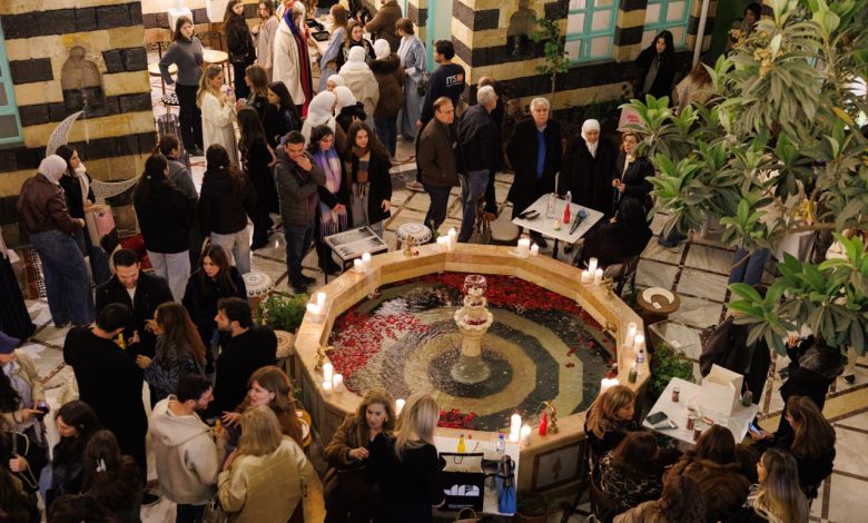 وشهد حفل الافتتاح أجواء تراثية عكست روح المكان، حيث أقيم بازار للحرف والمشغولات التقليدية، شمل عرض ألبسة وعباءات دمشقية مصنوعة من أقمشة البروكار الدمشقي، إلى جانب مجموعة من المنتجات اليدوية التي تعكس غنى الحرف التراثية المرتبطة بالهوية الثقافية للمدينة.